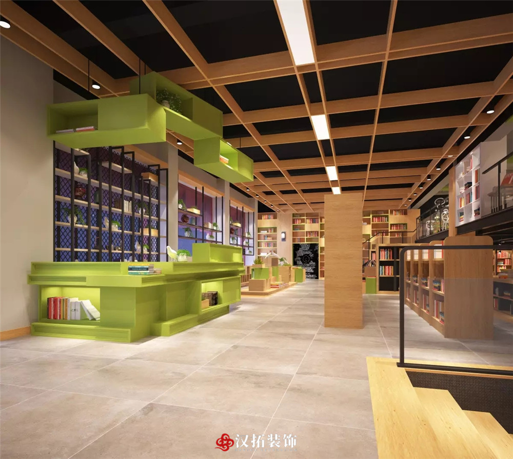 設(shè)計說明:整體光線明亮,適宜閱讀,不同類型的圖書展覽架使用不同的材質(zhì)和顏色作為區(qū)分,注重讀者體驗,整個空間有格調(diào),有層次,充滿精神享受。