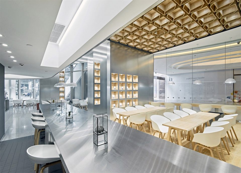 設(shè)計(jì)說明:設(shè)計(jì)師結(jié)合了業(yè)主的理念,試圖用設(shè)計(jì)的手法來制造一種“喝咖啡的儀式感”。不同于一般的咖啡廳那種濃烈的小資情調(diào),東緹咖啡廳是有自己的特殊企業(yè)理念的,東緹的負(fù)責(zé)人希望咖啡也能喝出儀式感,希望一杯咖啡,從開磨到?jīng)_泡到制作,到最終呈現(xiàn)在食客的面前,都是標(biāo)準(zhǔn)化的、工業(yè)化的、可視化的一個(gè)過程。做咖啡的過程就如同身處實(shí)驗(yàn)室,因此,漢拓設(shè)計(jì)師對(duì)于該咖啡廳的設(shè)計(jì)首先從燈光入手,并沒有采用其他咖啡廳昏暗燈光配慢搖的風(fēng)格,而是給予了明亮的射燈造型,讓制造咖啡的每一個(gè)過程都清晰無比的得以呈現(xiàn),也體現(xiàn)了企業(yè)標(biāo)準(zhǔn)化的訴求。