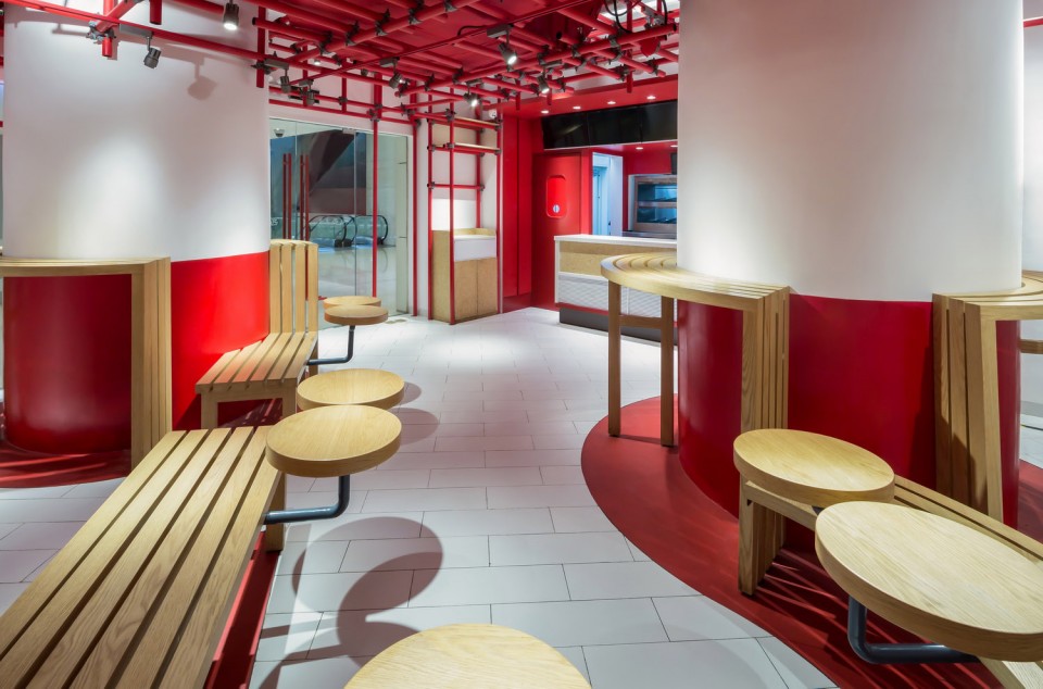 裝修理念:該咖啡廳是由南京漢拓裝飾工程有限公司裝修的。南京漢拓裝飾的設(shè)計(jì)師融入了自己對(duì)于餐飲行業(yè)的特殊性思考,結(jié)合了業(yè)主的意見,給予了紅色主題的亮點(diǎn)打造。在簡(jiǎn)餐咖啡廳的裝修中,環(huán)境設(shè)計(jì)需要一眼就能打動(dòng)食客,還要顯得干凈不繁雜。南京漢拓設(shè)計(jì)師將天花板的地方設(shè)計(jì)成了腳手架造型,再點(diǎn)綴以小射燈,一下子就增添了墻面的立體感,整個(gè)店面裝修設(shè)計(jì)的造型是環(huán)繞,讓空間利用率達(dá)到最大化。原木色桌椅也生動(dòng)不占空間。空間內(nèi)紅色忽明忽暗,增加了孔家的通透性,讓環(huán)境一下子生動(dòng)起來。