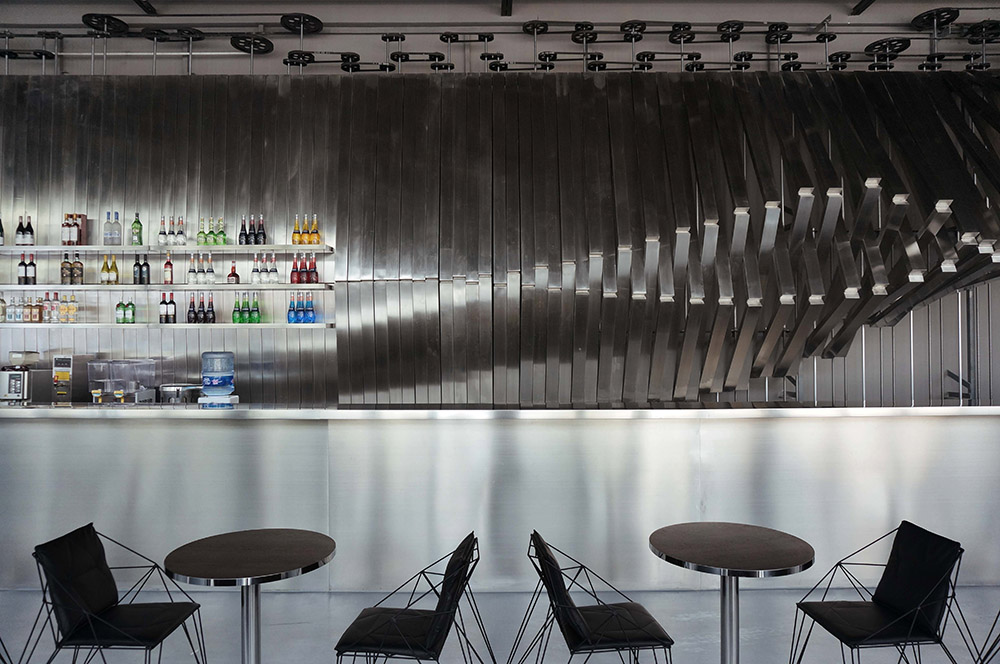 設(shè)計(jì)說明:該咖啡廳是由南京漢拓裝飾工程有限公司裝修的。該咖啡廳的定位就是酷炫,對于設(shè)計(jì)師的要求是結(jié)合工業(yè)現(xiàn)代元素,又要有智能化商業(yè)元素的糅合,設(shè)計(jì)師的基調(diào)是工業(yè)的金屬質(zhì)感,對于材質(zhì)的選材十分講究,塑造了十分硬朗的風(fēng)格,利用金屬材質(zhì)的反光特性,既制造了朦朧的映像,又可以反射光線在室內(nèi),斑駁的光感有別于其他咖啡館的模式。