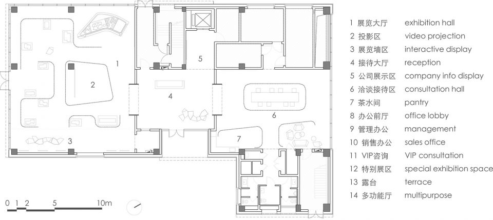 設計說明:該展廳是由南京漢拓裝飾工程有限公司裝修的。該行業(yè)為聯(lián)合辦公房屋租賃一站式服務行業(yè),主要從事聯(lián)合辦公室的一系列商務服務,因此,對于商業(yè)元素的裝修要求較高,該項目為展廳體驗中心,主要展示相關產(chǎn)品,設計師首先充分和業(yè)主溝通了解了對方的商業(yè)需求,有針對性的對室內(nèi)空間進行了布局和劃分,將其打造成了一個既有展示功能,又有線下體驗功能的實用場景。設計師考慮到了該展廳的展示作用,燈光、裝飾、走廊、色調(diào)、距離等都有很充分的把握,還將員工辦公室打造成了具有一定觀賞性質(zhì)的小體驗中心,十分用心。