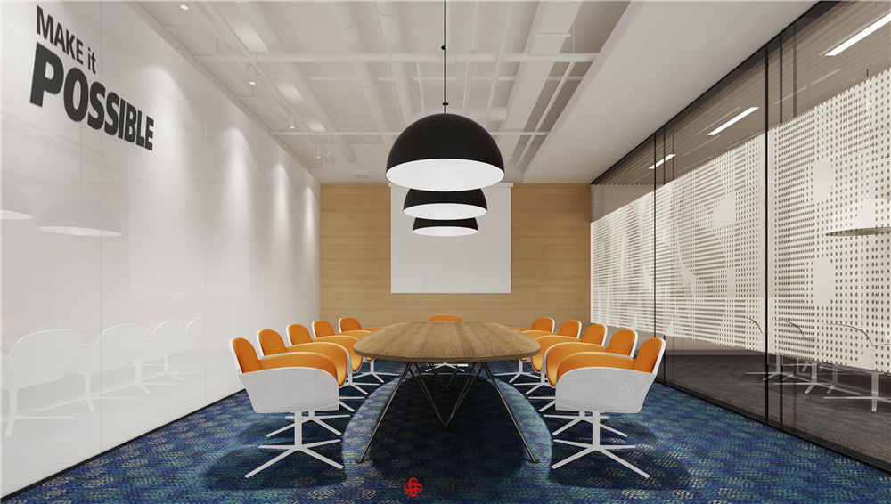 設(shè)計說明:預(yù)算:54萬 在選材用料上多用色彩鮮艷的顏色,替換掉辦公室的沉重感,使得辦公變得輕松愉悅