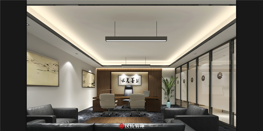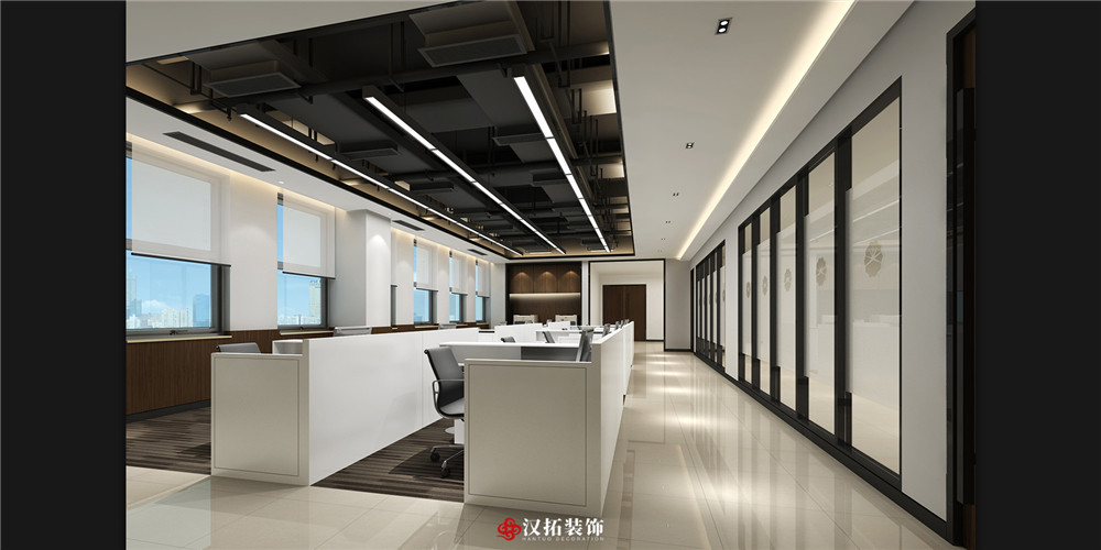設計說明:預算:128萬 設計說明:辦公室整體色調采用藍灰調,使員工辦公的心情能夠沉靜下來,工作效率自然可以得到提高